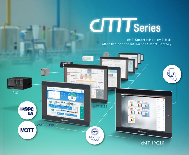 Build your IIoT using the built-in defacto IIoT protocols MQTT Broker and OPC UA server incorporated in the cMT3090