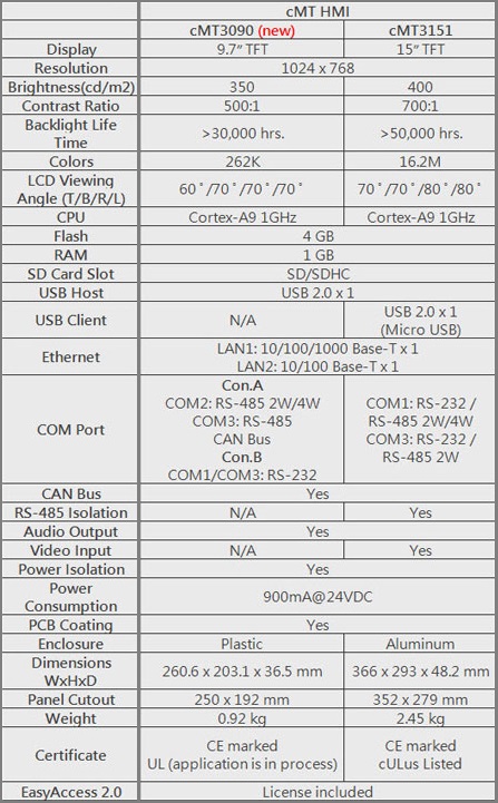 We're pleased to announce the launch of a new member of the cMT Series of HMI, the cMT3090, a welcome addition to the cMT range alongside the cMT3151 15" HMI offering a good alternative to applications that previously would have require a cMT-SVR-100 & a cMT-iV5 panel. Physically similar in size and appearance to the existing MT8090XE, the cMT3090 boasts a built-in CloudHMI server enabling access from iOS or Android device, or PC running the cMTViewer application. With an EasyAccess 2.0 licence built` in, remote access is a breeze.
