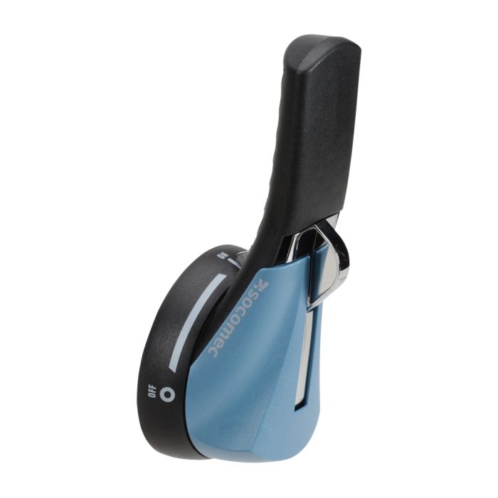 Socomec handle, pistol, heavy duty metallic hasp, S2 type, black/blue, external right side mount, defeatable, lockable. For use with NEMA 4/4X enclosures.