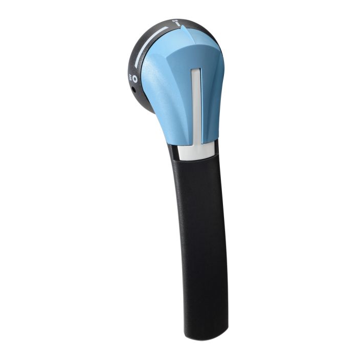 Socomec handle, pistol, S3 type, black/blue, external front mount, defeatable, lockable. For use with NEMA 1/3R/12 enclosures.