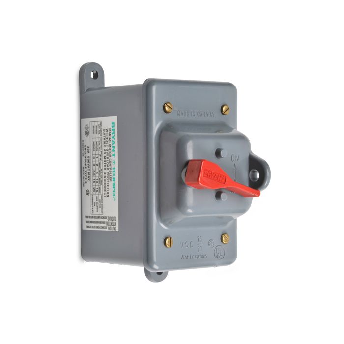 Manual motor controller, enclosed toggle switch type, NEMA 3R thermoplastic enclosure, 30A, 600VAC, 2-pole. Suitable as motor disconnect per UL 508.