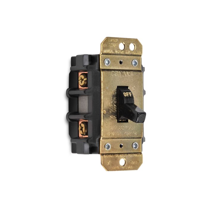 Manual motor controller, toggle switch, no enclosure, 40A, 600VAC, 2-pole, 15 hp. Suitable as motor disconnect per UL 508.