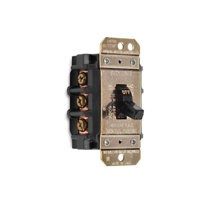 Manual motor controller, toggle switch, no enclosure, 40A, 600VAC, 3-pole, 20 hp. Suitable as motor disconnect per UL 508.