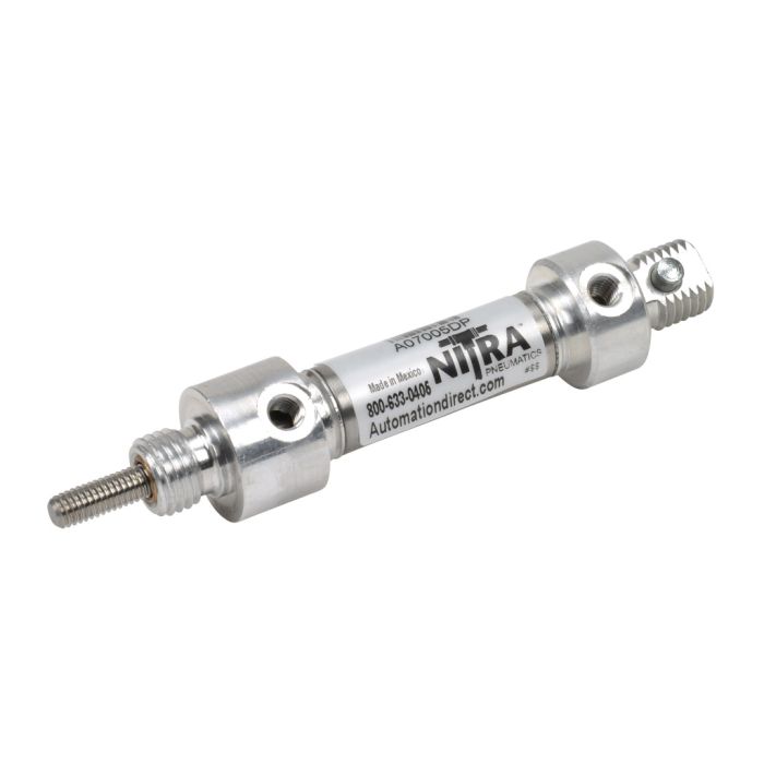 NITRA pneumatic air cylinder, non-repairable, 7/16in bore, 1/2in stroke, double acting, rear pivot mount.