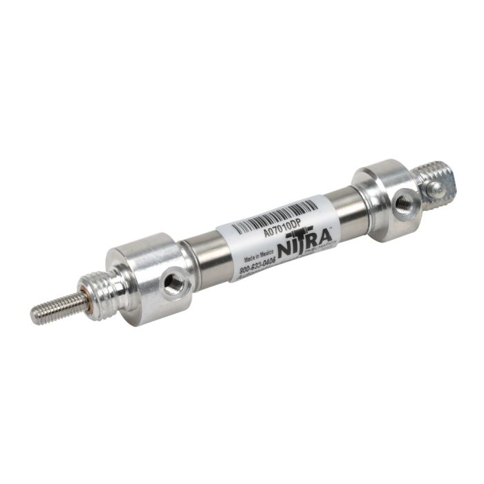 NITRA pneumatic air cylinder, non-repairable, 7/16in bore, 1in stroke, double acting, rear pivot mount.