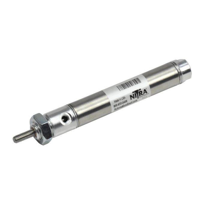 NITRA pneumatic air cylinder, non-repairable, 9/16in bore, 2in stroke, double acting, front nose mount.