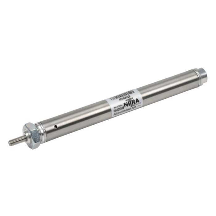 NITRA pneumatic air cylinder, non-repairable, 9/16in bore, 3in stroke, single acting, front nose mount.