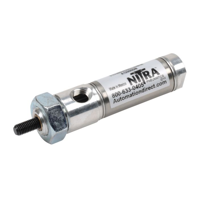 NITRA pneumatic air cylinder, non-repairable, 3/4in bore, 1/2in stroke, double acting, front nose mount.
