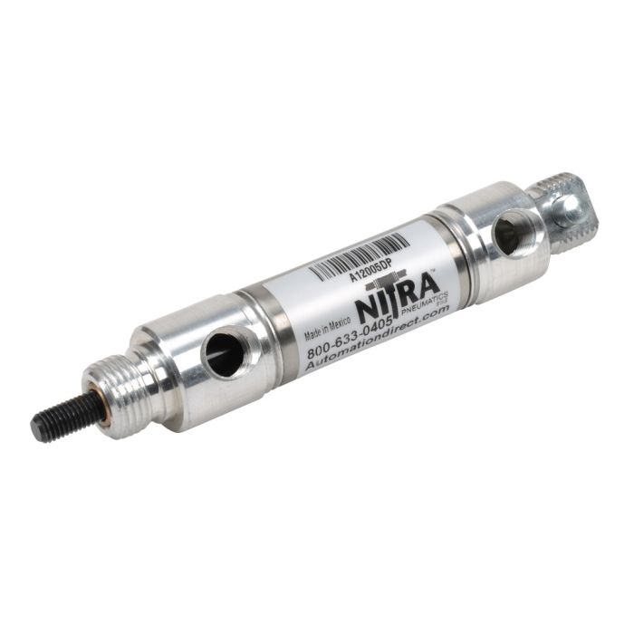 NITRA pneumatic air cylinder, non-repairable, 3/4in bore, 1/2in stroke, double acting, rear pivot mount.