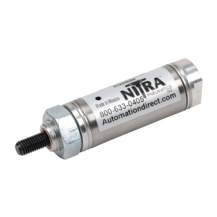 NITRA pneumatic air cylinder, non-repairable, 3/4in bore, 1/2in stroke, single acting, front nose mount.