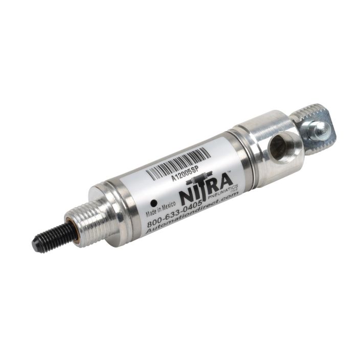 NITRA pneumatic air cylinder, non-repairable, 3/4in bore, 1/2in stroke, single acting, rear pivot mount.