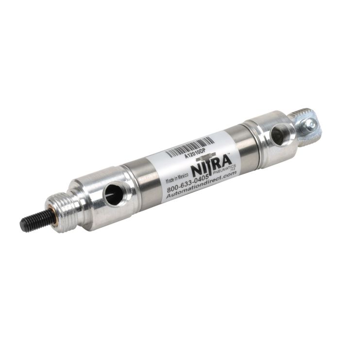 NITRA pneumatic air cylinder, non-repairable, 3/4in bore, 1in stroke, double acting, rear pivot mount.