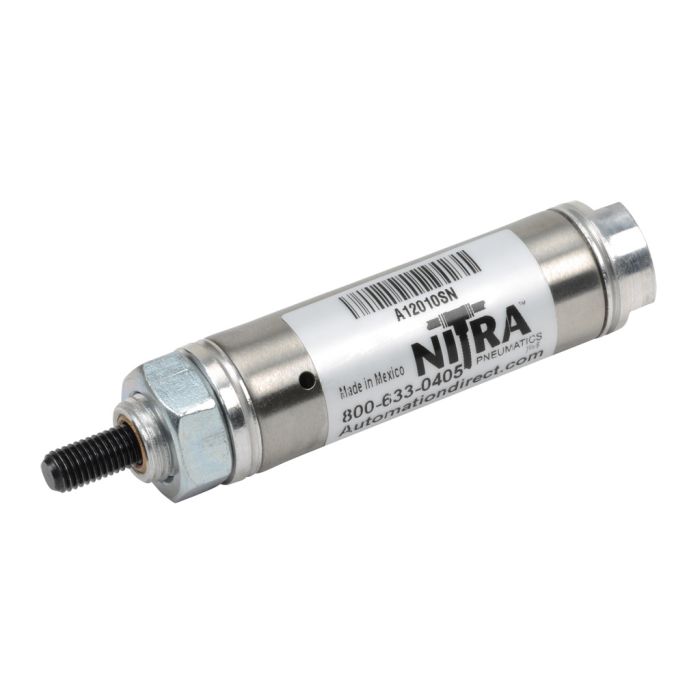 NITRA pneumatic air cylinder, non-repairable, 3/4in bore, 1in stroke, single acting, front nose mount.