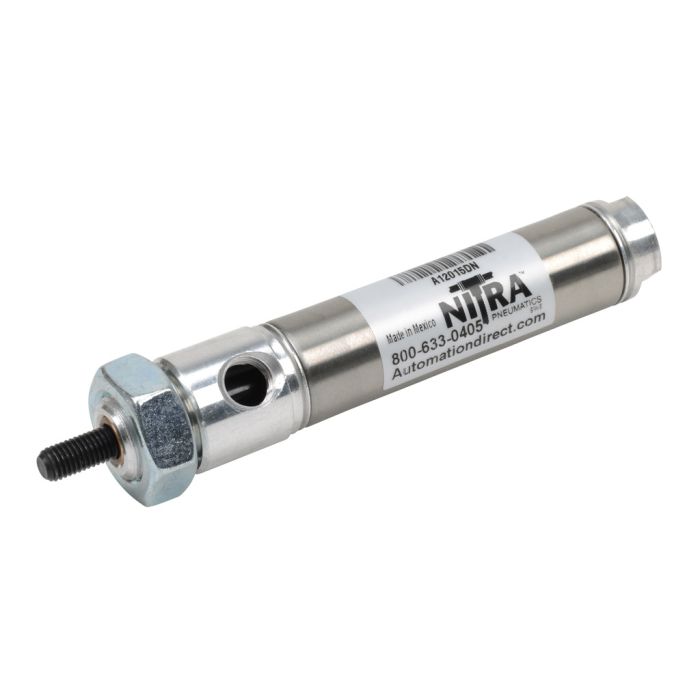 NITRA pneumatic air cylinder, non-repairable, 3/4in bore, 1-1/2in stroke, double acting, front nose mount.