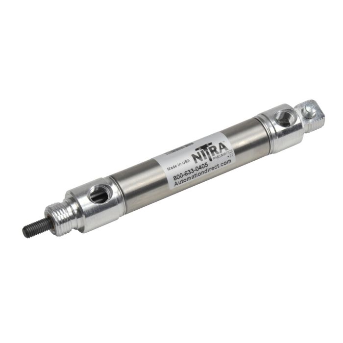 NITRA pneumatic air cylinder, non-repairable, 3/4in bore, 2in stroke, double acting, rear pivot mount.