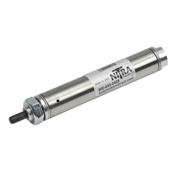 NITRA pneumatic air cylinder, non-repairable, 3/4in bore, 2in stroke, single acting, front nose mount.