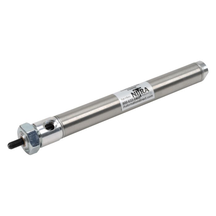 NITRA pneumatic air cylinder, non-repairable, 3/4in bore, 5in stroke, double acting, front nose mount.