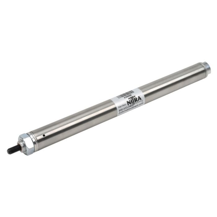 NITRA pneumatic air cylinder, non-repairable, 3/4in bore, 5in stroke, single acting, front nose mount.