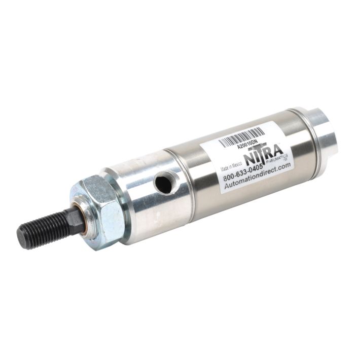 NITRA pneumatic air cylinder, non-repairable, 1-1/4in bore, 1in stroke, double acting, front nose mount.