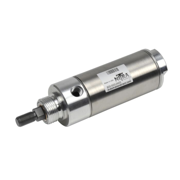 NITRA pneumatic air cylinder, non-repairable, 2in bore, 2in stroke, double acting, front nose mount.