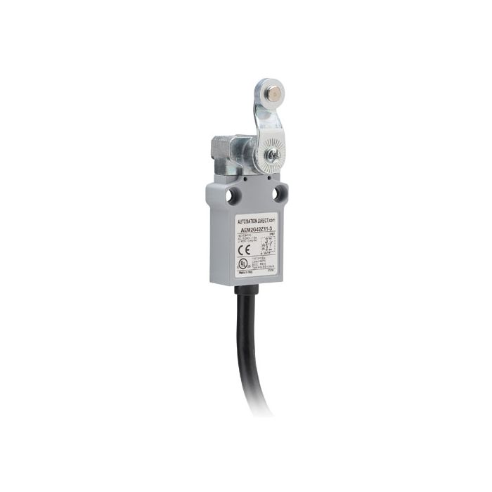 Limit switch, lever with 14mm metal roller, 1 N.O. and 1 N.C. contact with snap action, 35mm wide metal, IP67, 3-meter cable exit.