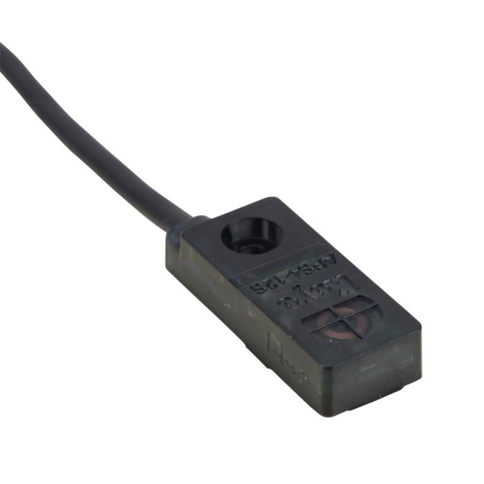 Koyo inductive proximity sensor, rectangular, 12 x 27 x 7 mm, NPN / PNP, 4 mm nominal sensing distance, unshielded, N.O. output, pigtail, 6.5 ft/2m cable length, polycarbonate housing.