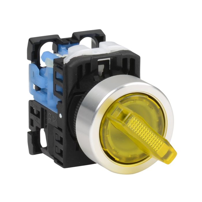 Fuji Electric selector switch, 22 mm, 2-position, maintained, LED illuminated, 1 N.O. contact(s), Operator: yellow, knob, 30 mm, round, plastic, 24 VAC/DC, full voltage.