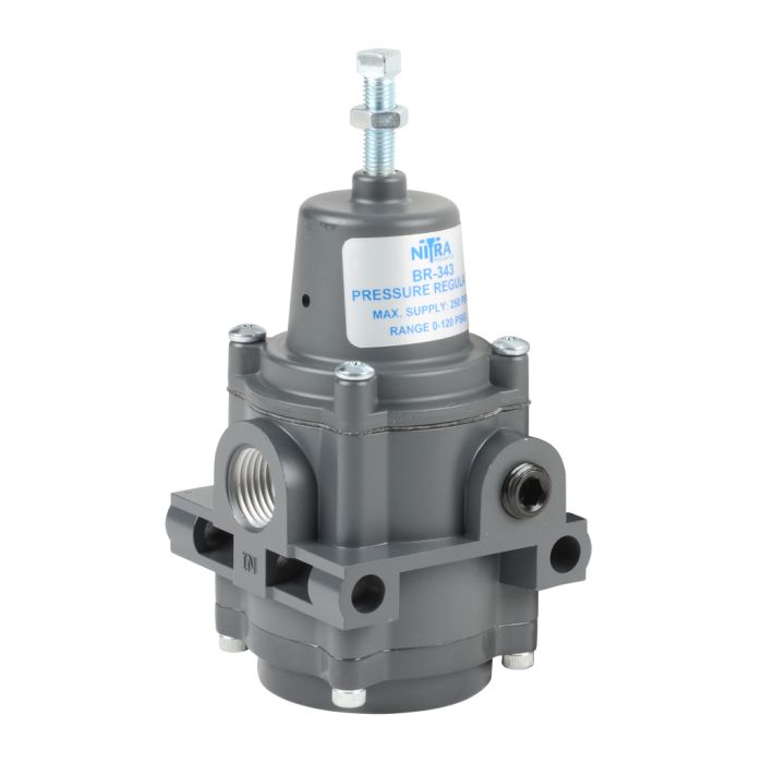NITRA pneumatic regulator, 1/2in female NPT inlet(s), 1/2in female NPT outlet(s), 0-120 psi adjustable range.