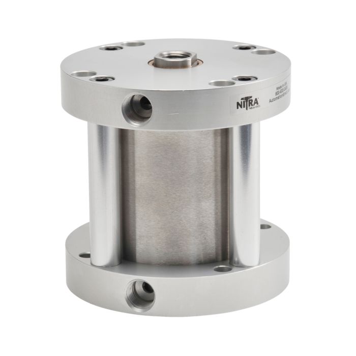 NITRA pneumatic air cylinder, compact, 2-1/2in bore, 2-1/2in stroke, double acting, counter-bored holes mount.