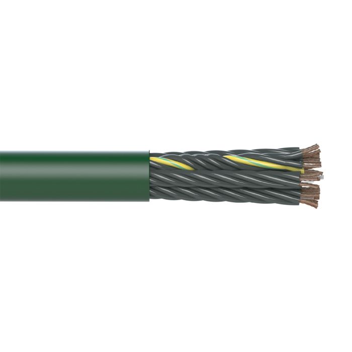 igus continuous flexing multi-conductor control cable, 25 conductors (includes ground), 0.75mm2 (18 AWG), PVC conductor insulation material, unshielded, PVC jacket, green, 100ft reel.