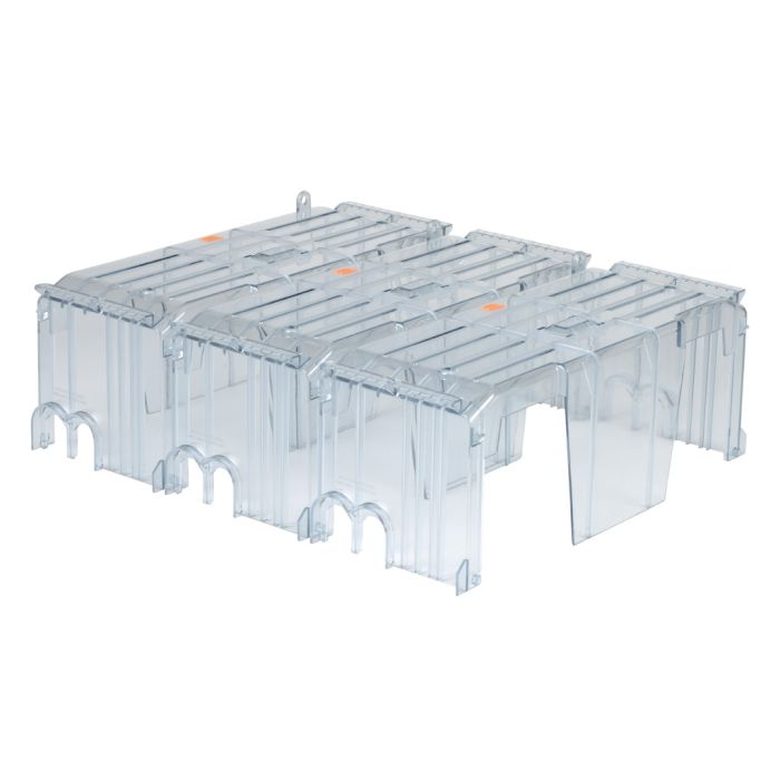 Edison fuse block cover, package of 3. For use with 250V 600A Class R modular fuse blocks.