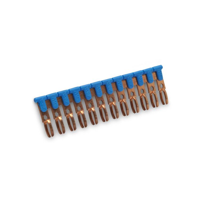 DINnector terminal block jumper, 12-pole, blue, 20A, 300V rated (UL), screwless type, Cutting tool (DN-J14CUT) is recommended to cut jumper, 10 per package.