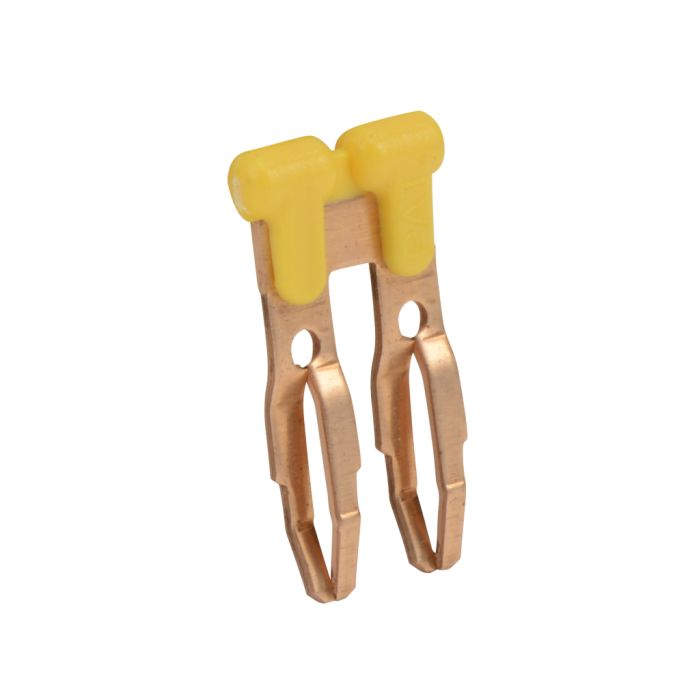 DINnector terminal block jumper, 2-pole, yellow, 25A, 600V rated (UL), screwless type. 25 per package.