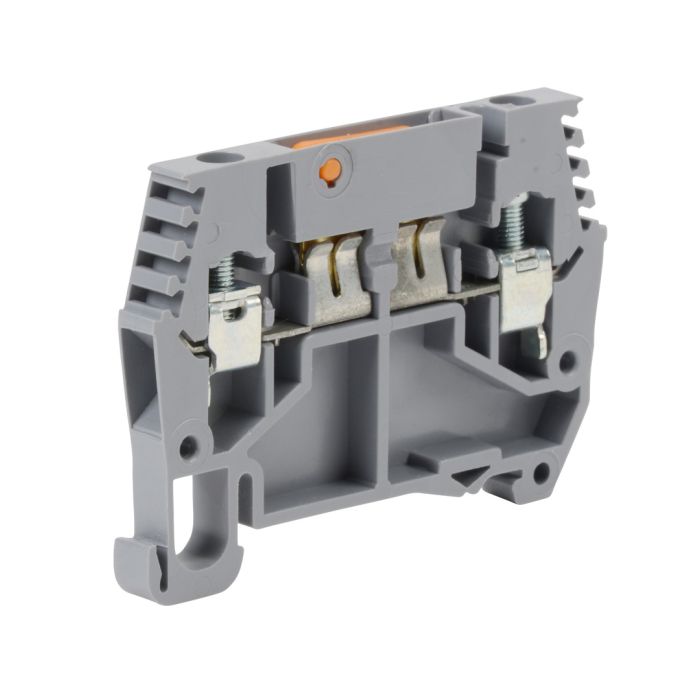 DINnector disconnect terminal block, 24-12 AWG, gray, 20A, 300V rated (UL), 8.2mm wide, with knife blade. 10 pieces per package.