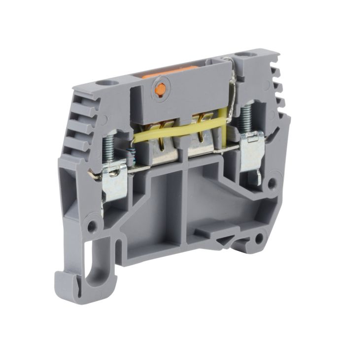 DINnector disconnect terminal block, with 24V LED, 24-10 AWG, gray, 25A, 300V rated (UL), 8.2mm wide, with knife blade. 10 pieces per package.
