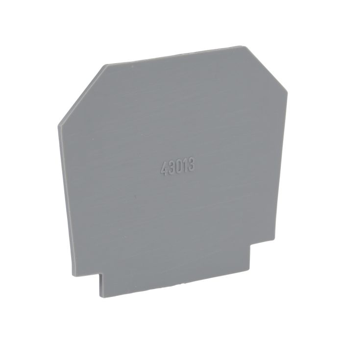 DINnector single-level terminal block end cover, gray. Use with any DN-T4 series terminal block. 10 pieces per package.