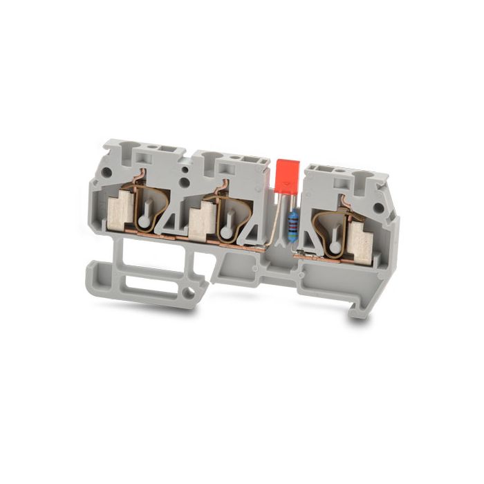 DINnector single-level screwless terminal block, with 24 VAC/DC LED, one-connection to two-connection, 24-12 AWG, 20A, 12-24V. 10 pieces per package.