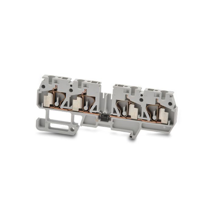 DINnector single-level screwless terminal block, with diode, two-connection to two-connection, 24-12 AWG, gray, 20A, 600V rated (UL). 10 pieces per package.