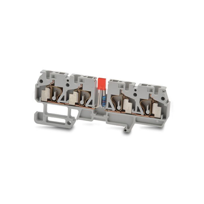 DINnector single-level screwless terminal block, with 12-24 VAC/DC LED, two-connection to two-connection, 24-12 AWG, gray, 20A, 12-24V. 10 pieces per package.