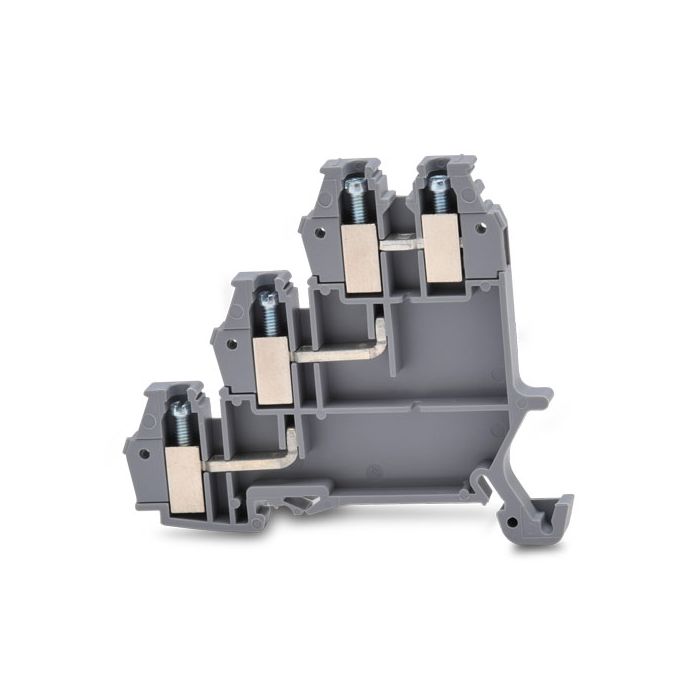 DINnector triple-level terminal block, for sensors, 26-14 AWG, gray, 10A, 300V rated (UL). 25 pieces per package.