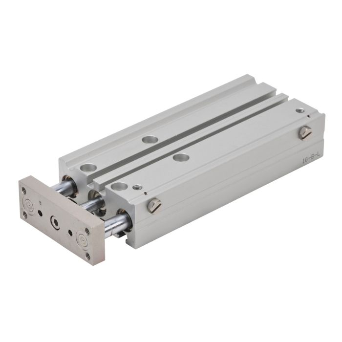 NITRA pneumatic air cylinder, dual guide rod, 12mm bore, 100mm stroke, double acting, magnetic piston, universal mount.