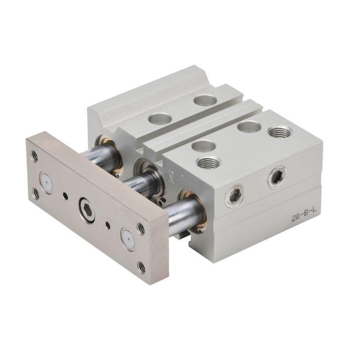 NITRA pneumatic air cylinder, dual guide rod, 20mm bore, 20mm stroke, double acting, magnetic piston, universal mount.