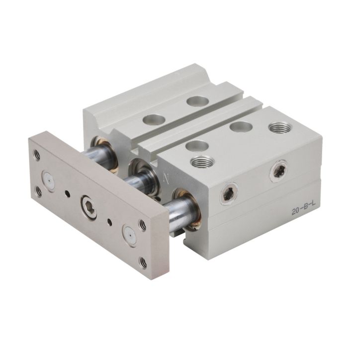 NITRA pneumatic air cylinder, dual guide rod, 20mm bore, 25mm stroke, double acting, magnetic piston, universal mount.