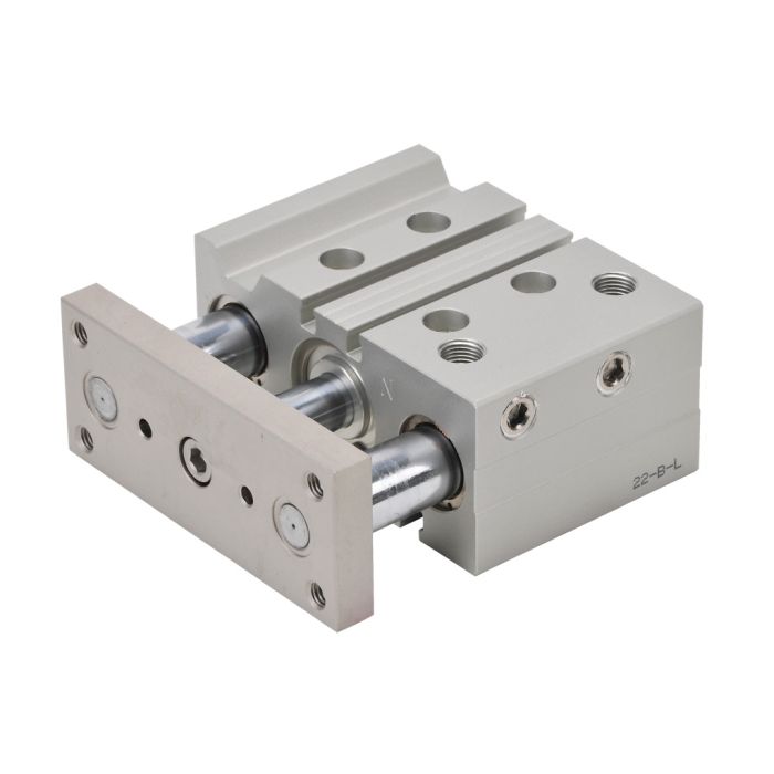 NITRA pneumatic air cylinder, dual guide rod, 25mm bore, 25mm stroke, double acting, magnetic piston, universal mount.