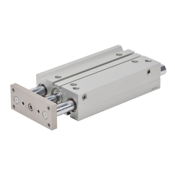 NITRA pneumatic air cylinder, dual guide rod, 25mm bore, 125mm stroke, double acting, magnetic piston, universal mount.