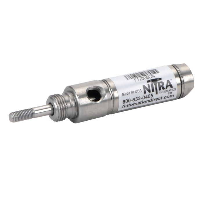 NITRA pneumatic air cylinder, all stainless steel non-repairable, 3/4in bore, 1/2in stroke, double acting, front nose mount.
