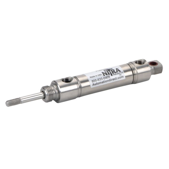 NITRA pneumatic air cylinder, all stainless steel non-repairable, 3/4in bore, 1in stroke, double acting, double end mount.