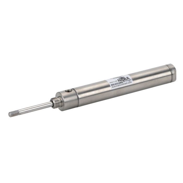 NITRA pneumatic air cylinder, all stainless steel non-repairable, 1-1/16in bore, 5in stroke, double acting, front nose mount.