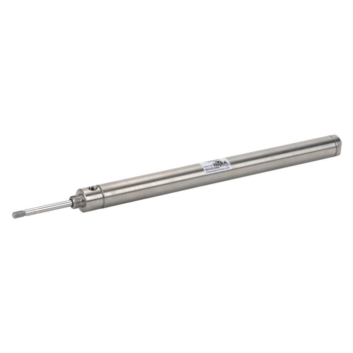 NITRA pneumatic air cylinder, all stainless steel non-repairable, 1-1/16in bore, 12in stroke, double acting, front nose mount.