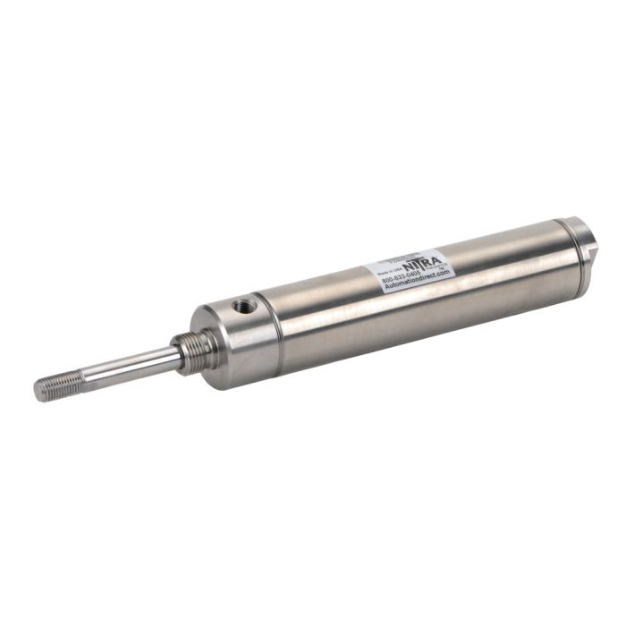 NITRA pneumatic air cylinder, all stainless steel non-repairable, 1-1/2in bore, 5in stroke, double acting, front nose mount.